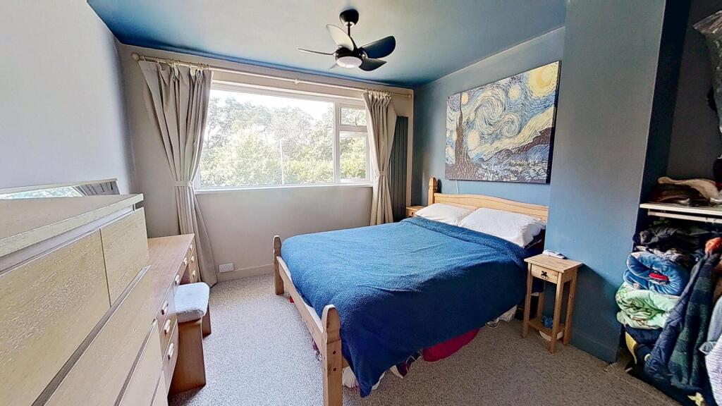 Upstairs, a bright, airy landing offers plenty of potential for future loft conversion, giving way to a family bathroom with separate bath and shower, and three generously sized double bedrooms. The smallest features dual windows, mirrored wardrobes, and original floorboards—ideal for a guest or child’s room. A creative boys’ room highlights ceiling height with built-in bunk and climbing wall, while the master offers a serene palette and ample space for king-sized comfort.