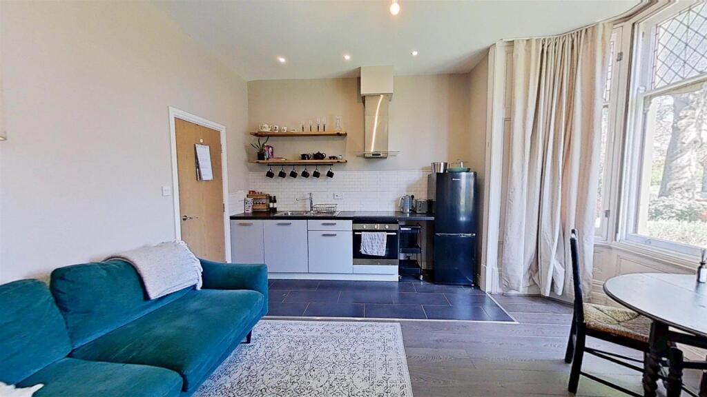 Nestled within a stunning row of period properties, this gorgeous one-bedroom apartment effortlessly blends original character with contemporary style. Through an immaculate front garden, a charming pathway leads to a porch rich in character, setting the tone for what’s inside. The living, kitchen, and dining areas flow seamlessly in an open-plan layout, framed by breathtaking original stained glass sash windows that offer picturesque views over Roath Park Rec.